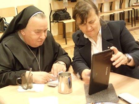 W niedzielę 18 października świętowaliśmy imieniny s. Małgorzaty. Na zakończenie Mszy św. była okazja do złożenia życzeń i wręczenia prezentów. Tegoroczny upominek od niesłyszących potwierdza powiedzenie, że człowiek całe życie się uczy, bo Siostra otrzymała... tablet. Witamy w wirtualnym świecie:)